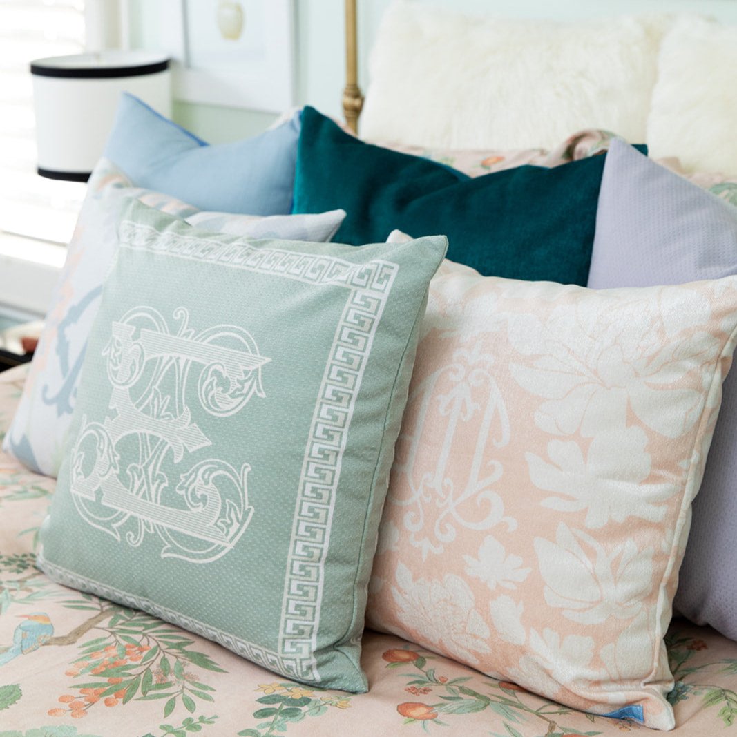 Shop our expertly curated colorways. Add a monogram to our preselected colorways to personalize your custom pillow.